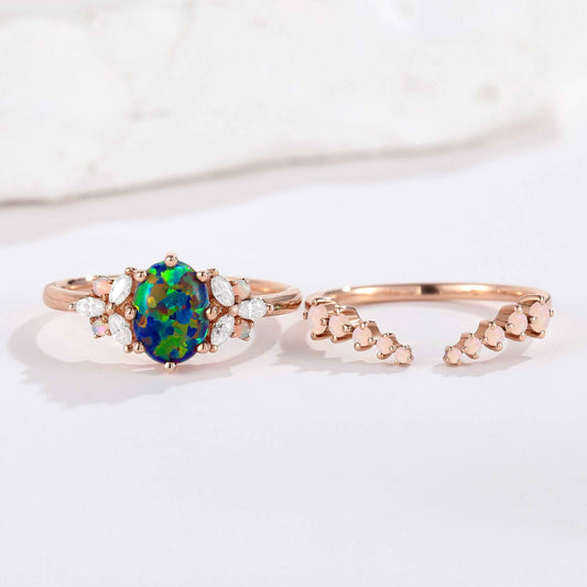 1.5ct Oval Opal Rose Gold Engagement Ring Set 2pcs