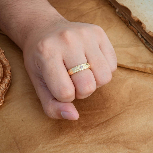 Vintage Engraved Pattern Heart Cut Men’s Lab Diamond Ring