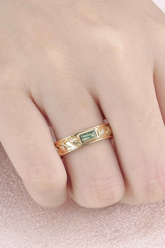 Moss Agate Band with Intricate Scroll and Leaf Inner Engraving - Dominic