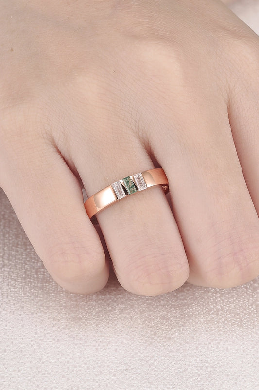 Mens Three Stones Wedding Band with Baguette Cut Moss Agate Inlay
