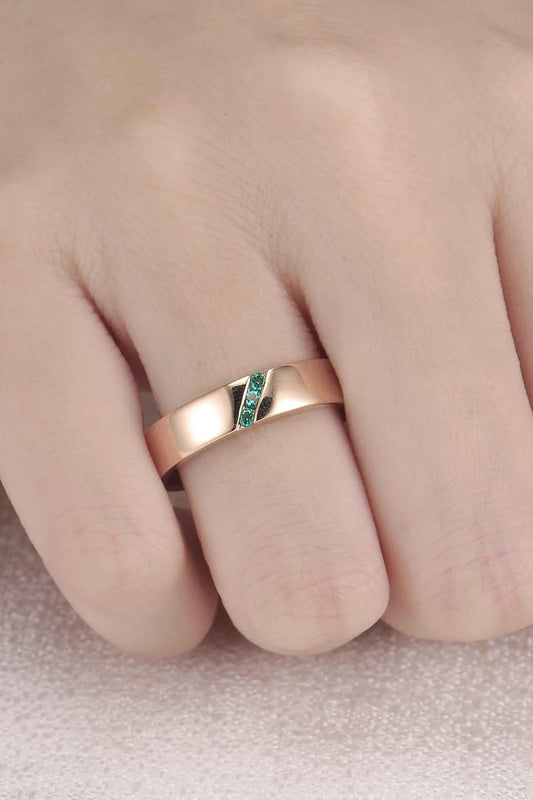 Mens Three Stones Wedding Band with Emerald Inlay